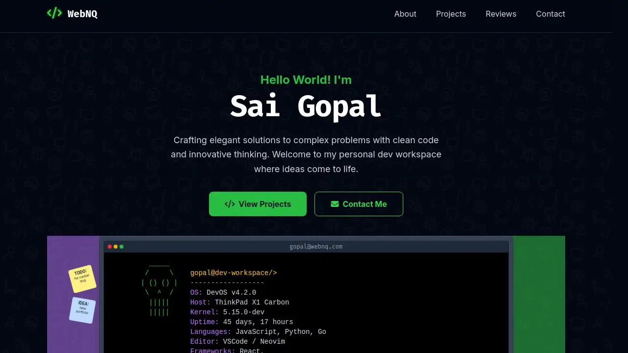 Crafting elegant solutions to complex problems with clean code and innovative thinking. Welcome to my personal dev workspace where ideas come to life.