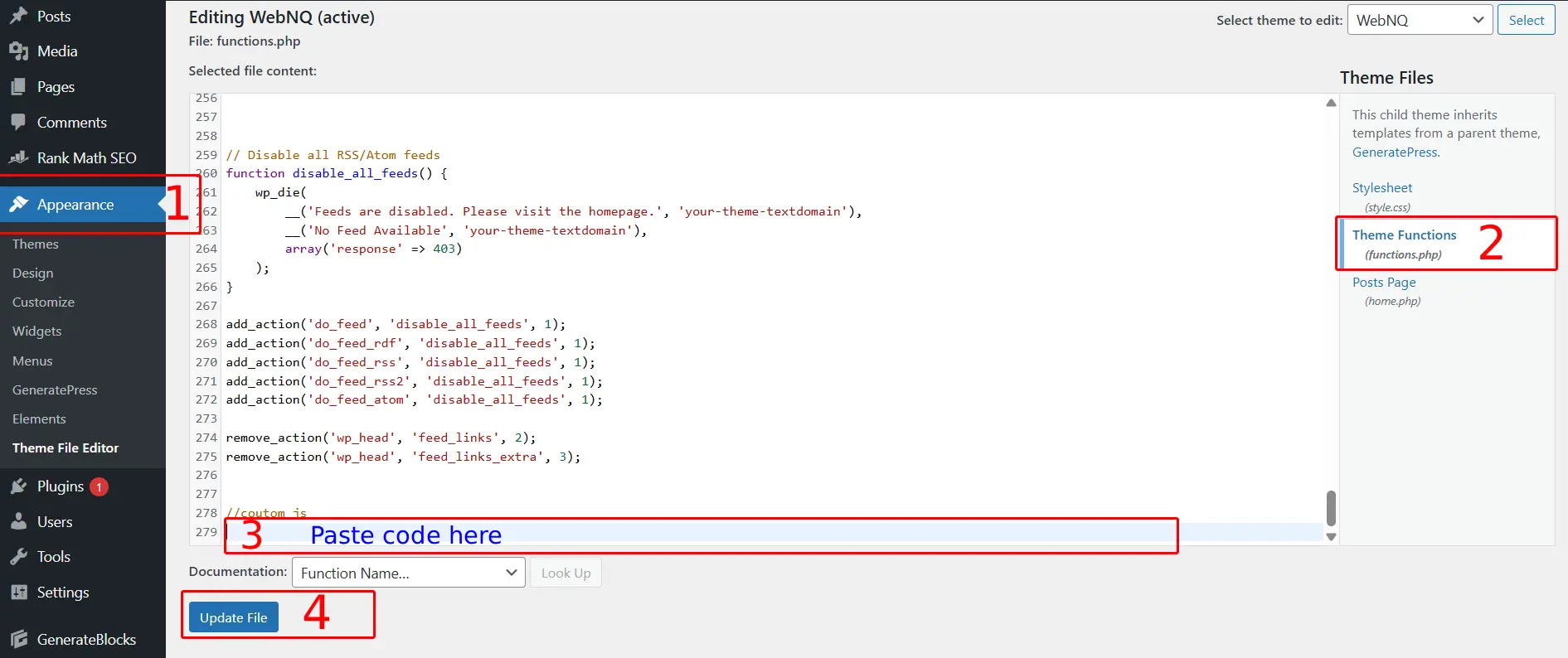 File Location: WordPress Dashboard > Appearance > Theme File Editor > Theme Functions add this code at bottom and Click Update File. That’s it. see this image for easy understand